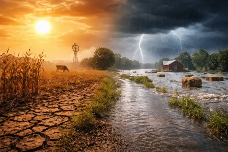 - Secas severas em regiões agrícolas